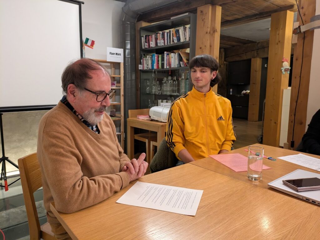 Hauptthema war ein aktiver Austausch zwischen dem langjährigen Mitglied Edi Fuhrer und dem jungen JUSO und SP Steffisburg Mitglied Nathan Richard. Die JUSO kämpft immer noch mit dem enttäuschenden Ergebnis der Abstimmung zur Erbschaftssteuer. Zumindest konnte Dank dieser Initiative eine Diskussion zum Thema angestossen werden. Es gehört wohl auch zur Aufgabe der JUSO aktuelle Systeme zu hinterfragen und Denkanstösse zu liefern, auch wenn diese dann letztendlich nicht zu konkreten Veränderungen führen. Nach der Frage, was sich Nathan von der SP Steffisburg wünscht, war die Antwort kurz und klar: “Eine linkere Politik“. Der spannende Austausch fand seinen Abschluss in der Feststellung, dass die ganze momentane Entwicklung auf allen Stufen sehr besorgniserregend ist. Es macht allerdings keinen Sinn den Kopf in den Sand zu stecken, kämpfen ist wohl die einzige Haltung. Darum ist es wichtig, sowohl bei den kantonalen als auch bei den Gemeindewahlen mit grossem Einsatz um Sitze zu kämpfen.